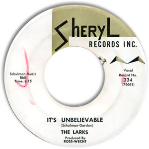 There were several groups named "Larks" over the years. This incarnation was active in the early 1960s. The A side is a nice RnB vocal group ballad, while the flip is a raucous early Soul dancer celebrating the Twist craze. The A side label has a checkmark on it (see scan), and the B side has a date penciled as well as a stamp reading "Via Air Mail."