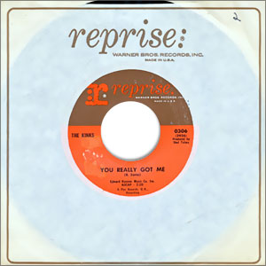 This is one of the seminal singles in the genesis of what became known as Garage Rock. Surprisingly (and disappointingly to fans of this and the group's next blockbuster, "All The Day And All Of The Night"), the group abandoned garage rock almost as soon as they had helped get it off the ground. Oh well, no problem. Just give me "You Really Got Me" any time you like! Be sure to also cherish the grungy B side rocker, which as it turns out is a non-album cut. This is the second pressing on the orange/brown Reprise label introduced on #0320 (see scan). First pressings were on the peach-colored label and are worth about $5.00 more. Note: This copy comes in a vintage Reprise Records factory sleeve. The labels look Near Mint, but the vinyl (styrene) has some notable scuffing, and the audio has very light degradation.