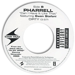 From a warehouse find, this is a new, unplayed stock copy. I've been a rap fan since the early 1980's, but recently I've felt the genre was getting stale. Then this new single came from my distributor and blew me away today... My son says it sounds like all the other rap songs to him, but I hear something special in it. Take a listen and see what you think! Even if you don't like rap, it's got a really interesting rhythm track together with an unusual instrumentation. Plus the catchy chorus! The A side is a "Clean" version, and the B side as the "Dirty" version. The single is a preview of a new LP coming in November 2005. The single features backing vocals by Gwen Stefani. (Now out of print.)
