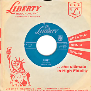Jackie DeShannon released two singles as Jackie Dee... This is the second one, from 1958. Neither single appeared on an album. Note: This beautiful copy comes in a vintage Liberty Records factory sleeve. It grades very close to Mint across the board (Labels, Vinyl, Audio).