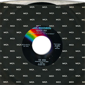 Here's a beautiful copy of the first issue, with the black/rainbow MCA label. Note: This 45 record comes in a vintage MCA Records factory sleeve. It has Near Mint labels and pristine Mint labels and audio. (This scan is a representative image from our archives.)