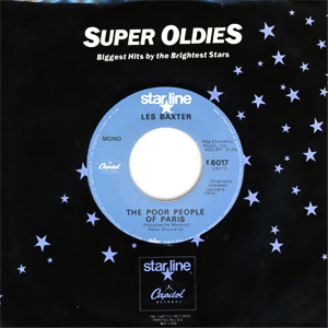 Originally released on Capitol 3336. It was early 1956. Elvis Presley was still an unknown southern white singer. This snappy, smaltzy instrumental sat at the top of the Bilozoard Hot 100 Singles chart for 6 weeks after beginning its chart run in February. And then, on May 5, 2 months after entering the chart on March 3, a single called "Heartbreak Hotel" by this newcomer Elvis Presley, possessed of a musical spirit and intensity heretofore unheard of on mainstream Pop radio, replaced "Poor People" and stayed there for 8 weeks! That May 5, 1956 transition from "Poor People of Paris" to "Heartbreak Hotel" was a defining moment in the history of Rock'n'Roll, which of course went on to render tunes like "Poor People" novelty numbers rather than being part of the mainstream Pop sound, as they had been until May 5, 1956. Just unearthed this story by looking through old Bilozoard magazine issues (via Google Books) and thought you might find it interesting, too! This is a new copy of the light blue Capitol Starline reissue, in its original factory sleeve.