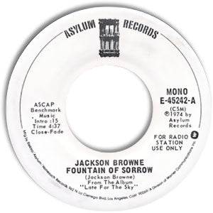 Stereo/Mono promo copy. Here's a real treat for Jackson Browne fans: One of the two excellent singles from one of Browne's most excellent albums,