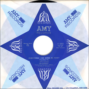 Here's a Lee Dorsey single that's particularly hard to find, especially in this shape. His last chart single on Amy, it's definitely one of his funkiest tracks. The flip is an uptempo dancer in a Northern Soul style. Note: This beautiful copy has a small drillhole and comes in a vintage Bell Records factory sleeve. The audio is near mint, but I heard a bit of surface noise at the beginning of the B side track.