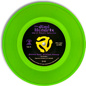 These tracks from Electric Ladyland were not previously released on 45 rpm. This great picture-sleeve single, pressed on clear green vinyl, is from the ten-45 box set of classic Hendrix singles released in 1998. From the liner notes to the box set, Steve Rodham calls this one a