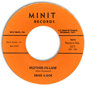 This is a beautiful first-pressing copy on the orange Minit label (plays normally, at 45 rpm; collector nerd alert: a rare mis-pressing plays at 33 rpm). Yes, "Mother-in-Law" deserves to be on Dave Marsh's list of the 1,001 greatest singles, and it's one of the late, great New Orleans musical genius
