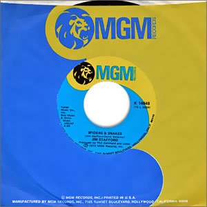 This song is too good as music to put in the Novelty category, though it never fails to make me smile at the humor, too. Some categorize it in Country, but it's not really that, either. It's swamp-rock, but I don't have a category for that. :-) The B side is a non-album track. Note: This beautiful copy comes in a vintage MGM Records factory sleeve. It has Near Mint labels, with a Mint A label and a B label with some "bubbling" wear. The vinyl (styrene) looks somewhat scuffed, grading a strong EX in appearance, but the audio sounds almost pristine with no distortion and almost no surface noise.