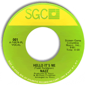 From a warehouse find, this is a new, unplayed stock copy of the third pressing of this classic single. Though the A side is the band's most famous song and was a hit again for Nazz's guitarist and songwriter, Todd Rundgren, in 1973--in fact, it was Rundgren's biggest hit and only top 10 single--my personal fave is the terrific, snarly B side. Rundgren had clearly been listening to the Who, but that's OK: It's a great song and a great sound! That Nazz and SGC thought so, too, is evidenced by the fact that "Open My Eyes" was actually the original A side of the single. As the chart information shows, "Eyes" charted nearly 6 months before "Hello" started up the chart.