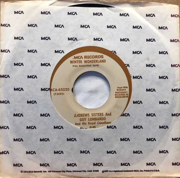 Originally released on Decca 23722. These recordings feature Guy Lombardo "And His Royal Canadians." Perry Como had a chart hit with "Winter Wonderland" the same year. This is a new copy of the MCA reissue, in its MCA factory sleeve.