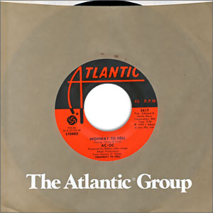 Here's a beautiful copy of AC/DC's first chart single... one of their very best tunes. Note: This 45 record comes in a vintage Atlantic Group factory sleeve. It has Near Mint labels and vinyl (styrene) and pristine Mint audio. (This scan is a representative image from our archives.)