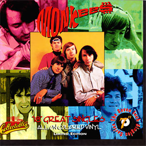 This is a complete set of Collectables' limited edition box of colored vinyl Monkees 45s. The box contains 18 singles, each pressed on transparent yellow vinyl, for a total of 36 songs... including two by Micky Dolenz! The set includes all the group's singles, and then some. Of course, the biggies are all here, including\r\n