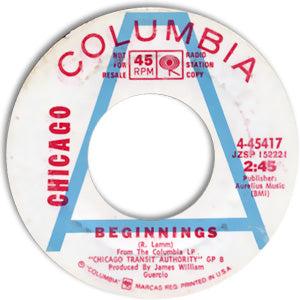 Note: This promo copy comes in a vintage Columbia Records factory sleeve. This was the first release of "Beginnings," with a different B side. The audio is very close to Mint. (This scan is a representative image from our archives.)
